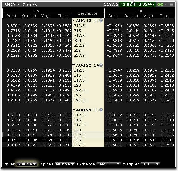 您能够选择仅打开期权分析窗口中的Greeks部分。