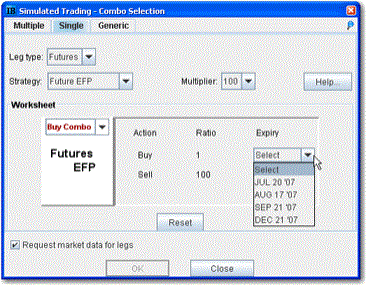 You can create any kind of combination spread order using the Combination Composition box, including multiple leg combos, futures spreads and EFPs, and inter-market Smart combos.