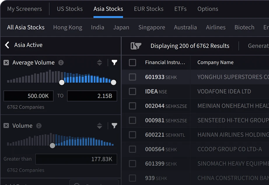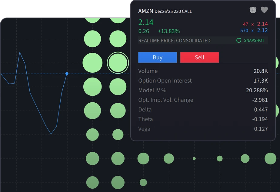 使用高级图表、筛选器、二级数据、期权工具和实时洞察进行操作。