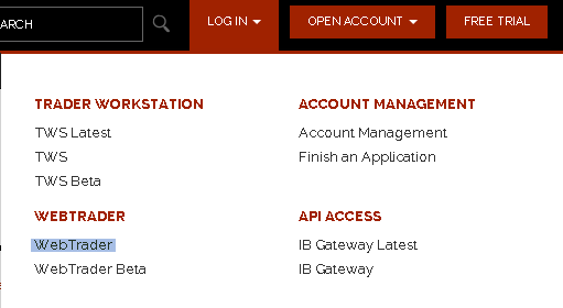 right corner of the IB home page, select WebTrader from